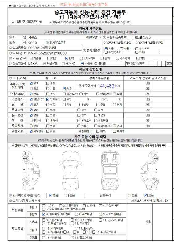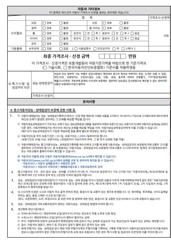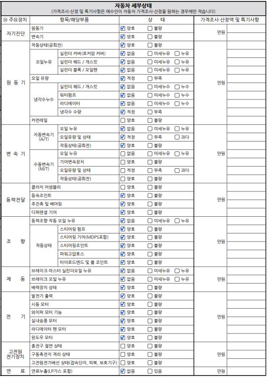 -사고여부 : 성능점검 기록부 참고